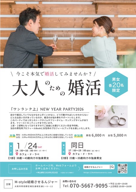 大好評中の「ワンランク上」のパーティー!新春にスペシャル価格で、ご参加可能です!